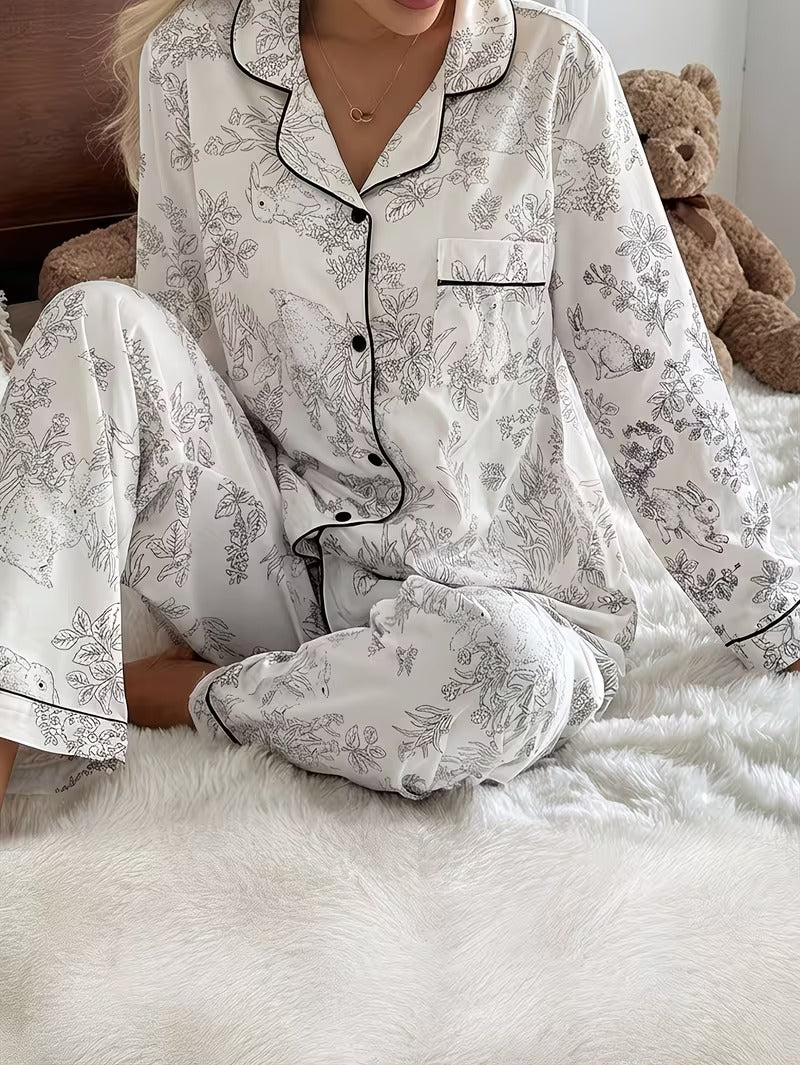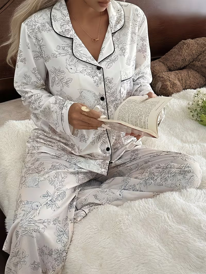 Chic, comfortable, and effortlessly stylish, this set is ideal for those who love classic pajama designs with a romantic twist.