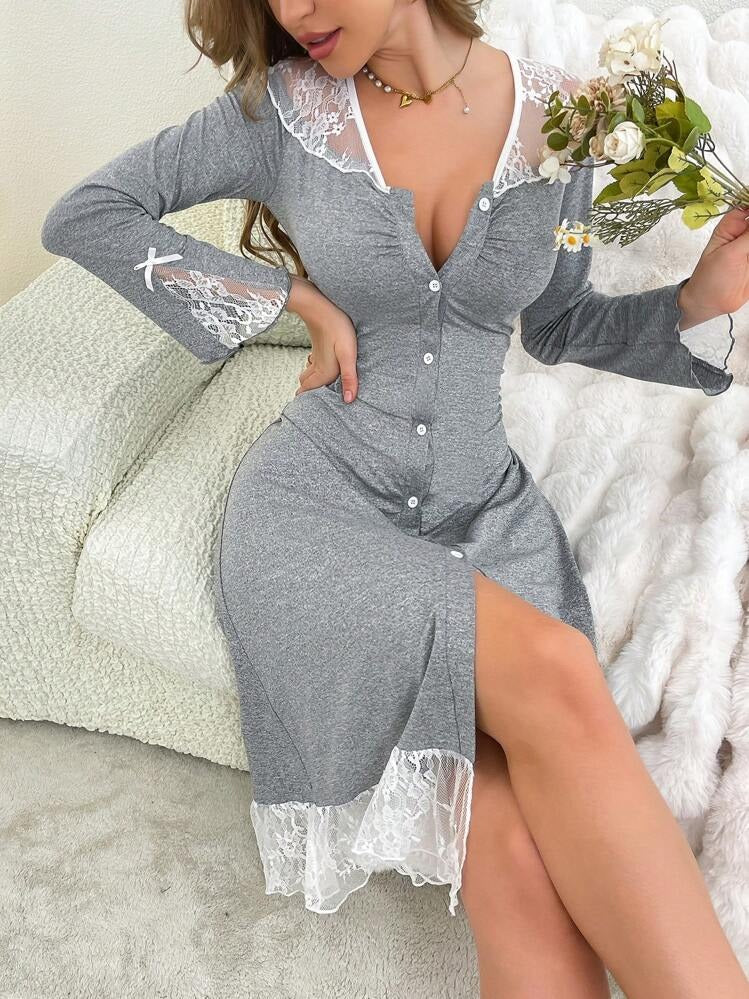 Elyoni Lace Embrace Button-Front Nightgown