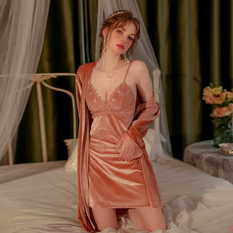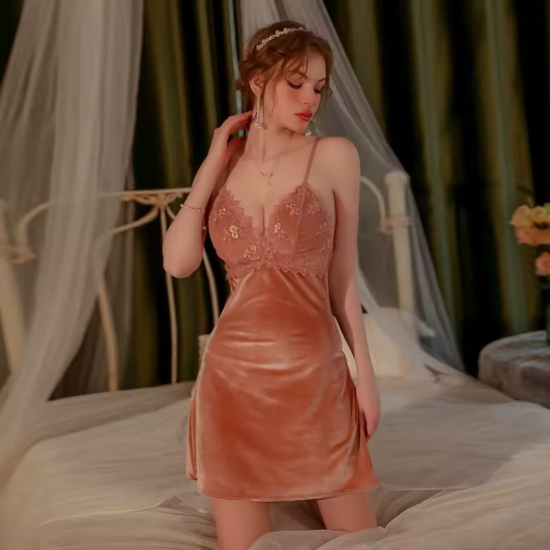 Indulge in timeless elegance with the Aurora Velvet Lace Nightgown — a luxurious piece designed to bring sophistication and comfort together. Crafted from soft, smooth velvet fabric, this nightgown gently embraces the body while offering a refined, graceful silhouette.