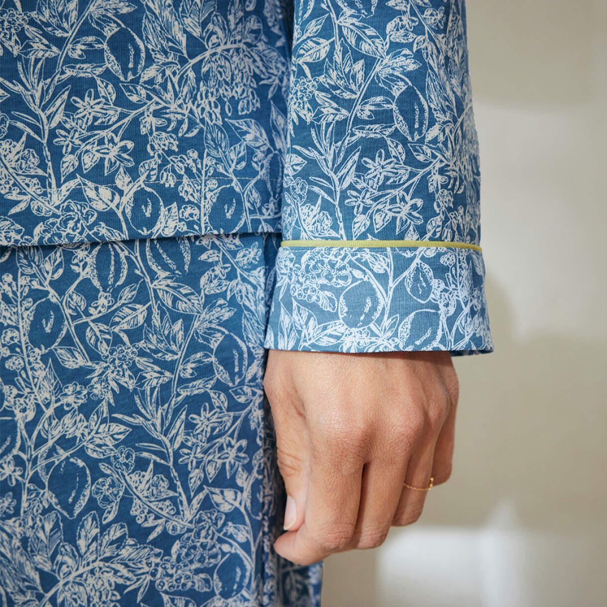 Elyoni Blue Botanical Print Elegant Pajama Set