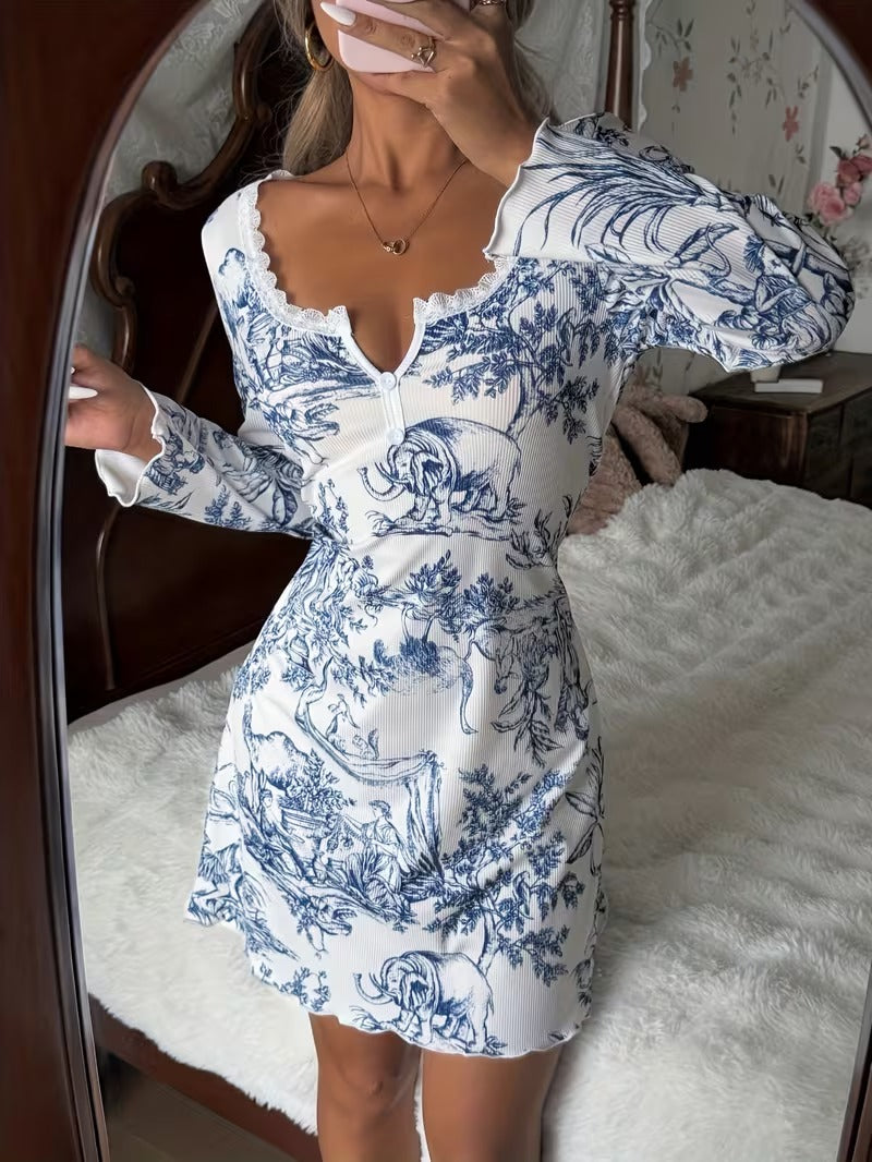 Elyoni Blue Garden Relaxed Nightgown